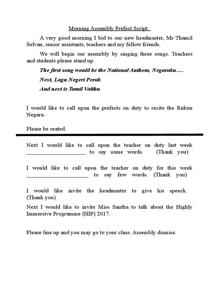 Morning Assembly Prefect Script - Give script for assembly for muslims school.